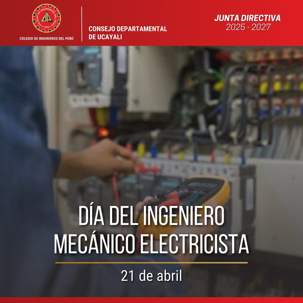 El Colegio de Ingenieros del Perú – Consejo Departamental de Ucayali saluda con orgullo a todos los Ingenieros Mecánico Electricistas en su día.