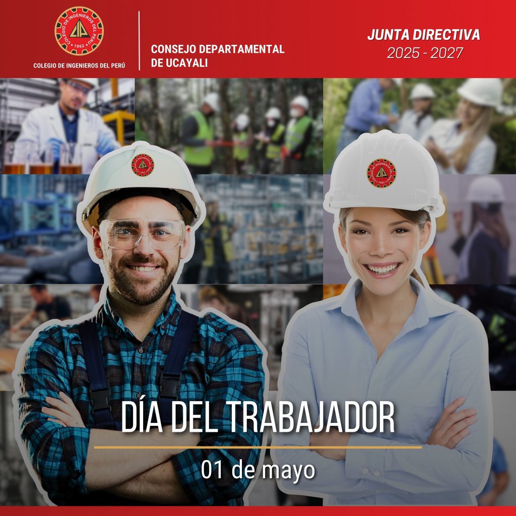 En este 1º de mayo, el Colegio de Ingenieros del Perú – Consejo Departamental de Ucayali, expresa su más sincero reconocimiento y saludo a todos los trabajadores de nuestra región y del país, en especial a los ingenieros y profesionales que día a día contribuyen al desarrollo y progreso del Perú con su esfuerzo, compromiso y dedicación.