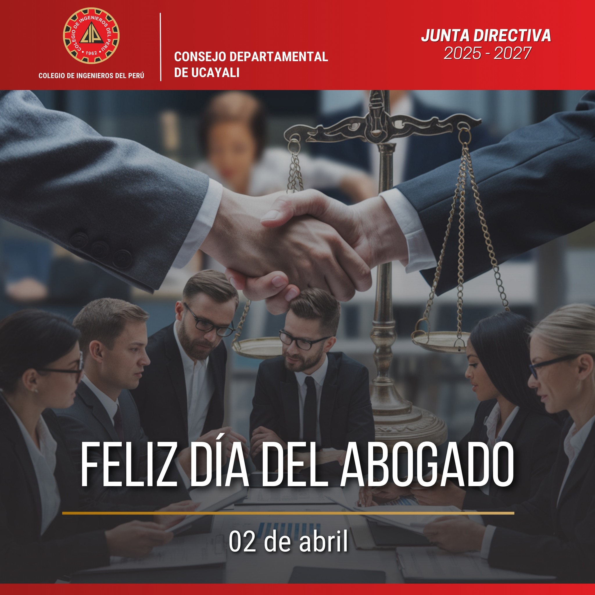 El Colegio de Ingenieros del Perú – Consejo Departamental de Ucayali extiende su más sincero saludo y reconocimiento al Ilustre Colegio de Abogados de Ucayali y a todos los profesionales del Derecho en su día. Valoramos y admiramos su compromiso con la justicia, la defensa de los derechos y el fortalecimiento del Estado de Derecho en nuestro país. Su labor es fundamental para garantizar una sociedad más equitativa y con acceso a la justicia para todos. En esta fecha especial, reiteramos nuestro respeto y felicitaciones a quienes, con vocación, ética y profesionalismo, contribuyen al bienestar de nuestra sociedad. 𝐈𝐍𝐆. 𝐌𝐀𝐍𝐔𝐄𝐋 𝐀𝐍𝐓𝐎𝐍𝐈𝐎 𝐆𝐎𝐌𝐄𝐙 𝐑𝐀𝐌𝐈𝐑𝐄𝐙 𝐷𝑒𝑐𝑎𝑛𝑜 𝐷𝑒𝑝𝑎𝑟𝑡𝑎𝑚𝑒𝑛𝑡𝑎𝑙 𝑑𝑒 𝑈𝑐𝑎𝑦𝑎𝑙𝑖 𝐶𝑜𝑙𝑒𝑔𝑖𝑜 𝐷𝑒 𝐼𝑛𝑔𝑒𝑛𝑖𝑒𝑟𝑜𝑠 𝐷𝑒𝑙 𝑃𝑒𝑟𝑢́