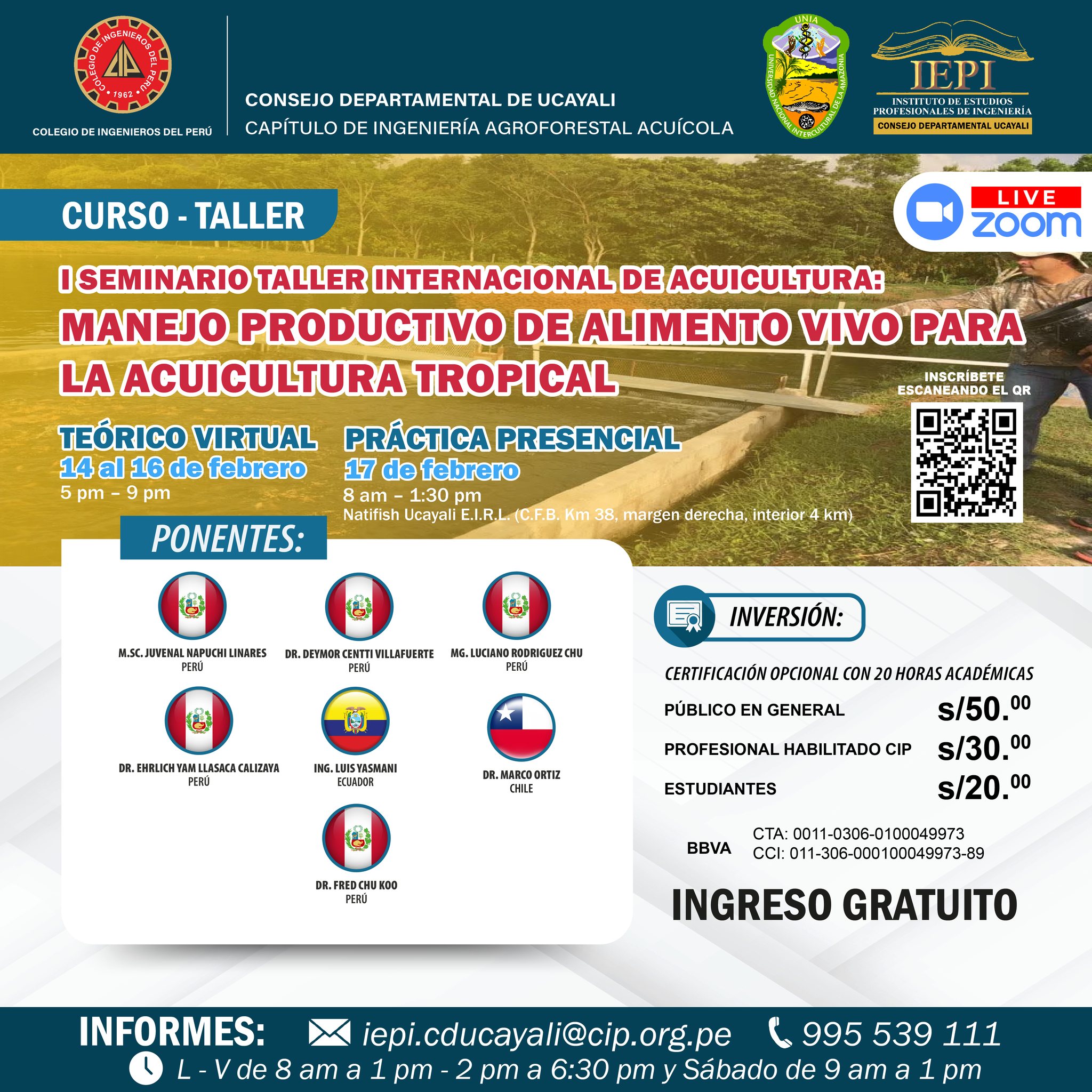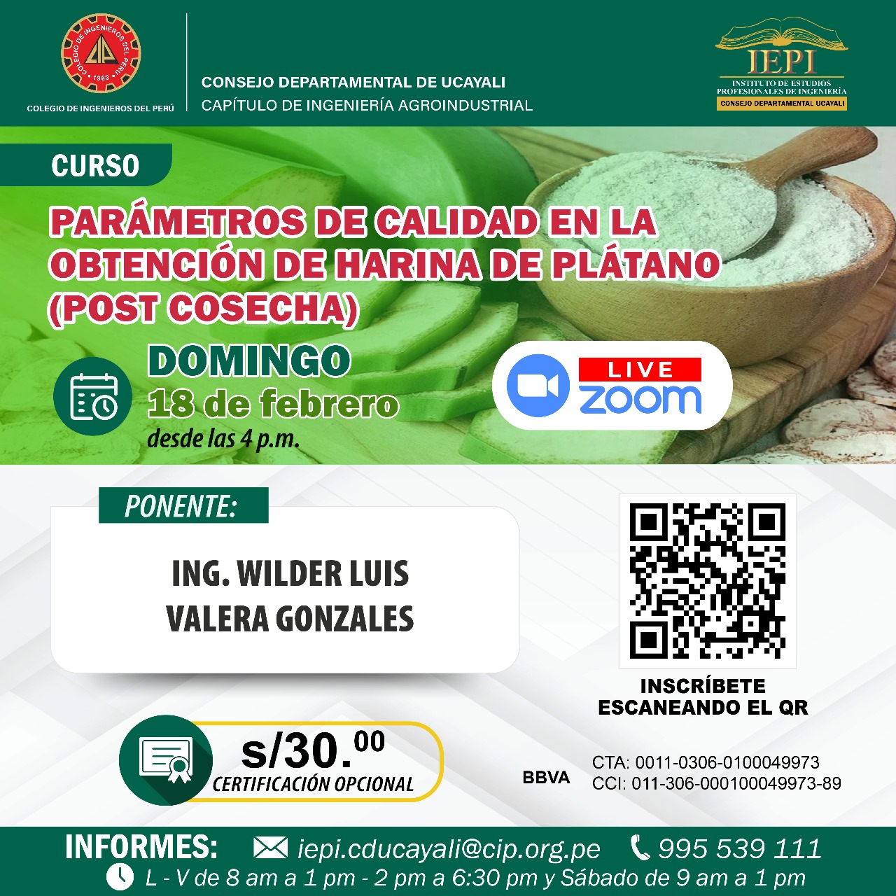 𝗙𝗲𝗰𝗵𝗮: 18 de Febrero 2024 (4:00 pm) 𝗜𝗻𝘀𝗰𝗿𝗶𝗽𝗰𝗶𝗼́𝗻: https://forms.gle/f2fp4tzBZSP3drwv7 𝗣𝗼𝗻𝗲𝗻𝘁𝗲: Ing. Wilder Luis Valera Gonzales 𝗖𝗲𝗿𝘁𝗶𝗳𝗶𝗰𝗮𝗱𝗼 𝗢𝗽𝗰𝗶𝗼𝗻𝗮𝗹: S/ 30.00 𝗗𝗘𝗣𝗢́𝗦𝗜𝗧𝗢 𝗘𝗡 𝗕𝗕𝗩𝗔:CTA: 0011-0306-0100049973CCI: 011-306-000100049973-89 𝗜𝗠𝗣𝗢𝗥𝗧𝗔𝗡𝗧𝗘: 𝑒𝑛𝑣𝑖𝑎𝑟 𝑣𝑎́𝑢𝑐ℎ𝑒𝑟 𝑎 𝑙𝑎 𝑆𝑟𝑡𝑎. 𝑎𝑠𝑖𝑠𝑡𝑒𝑛𝑡𝑒 𝑑𝑒 𝐼𝐸𝑃𝐼/𝐶𝐼𝑃-𝐶𝐷𝑈 𝗜𝗡𝗙𝗢𝗥𝗠𝗘𝗦:Jhajaira Gerali Fontes Bocanegra – 995 539 111(Asis. IEPI/CIP-CDU)Link directo a WhatsApp: https://wa.me/51995539111Correo: iepi.cducayali@cip.org.pe 𝗛𝗢𝗥𝗔𝗥𝗜𝗢 𝗗𝗘 𝗔𝗧𝗘𝗡𝗖𝗜𝗢́𝗡 𝗜𝗘𝗣𝗜/𝗖𝗜𝗣-𝗖𝗗𝗨:L – V de 08:00 Hrs. a 13:00 Hrs. – 14:00 Hrs. a 17:30 Hrs.Sábado de 09:00 Hrs. a 13:00 Hrs