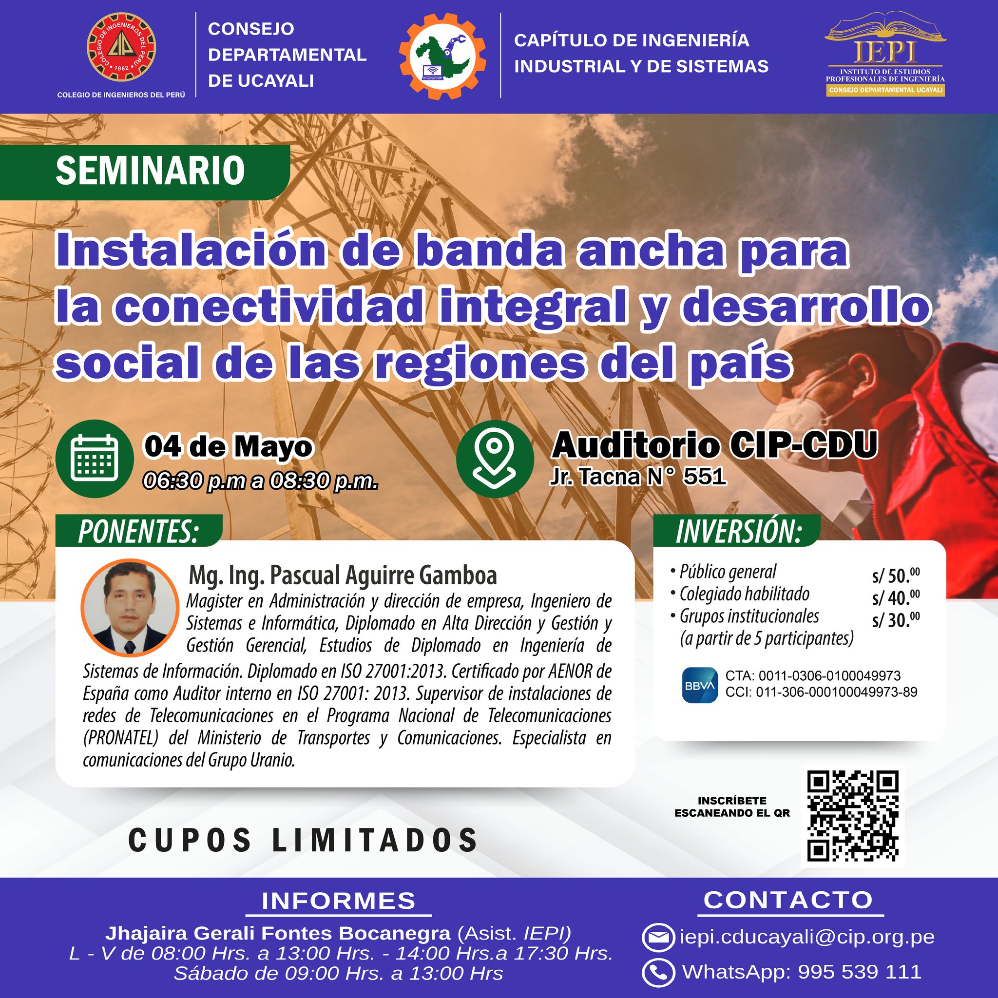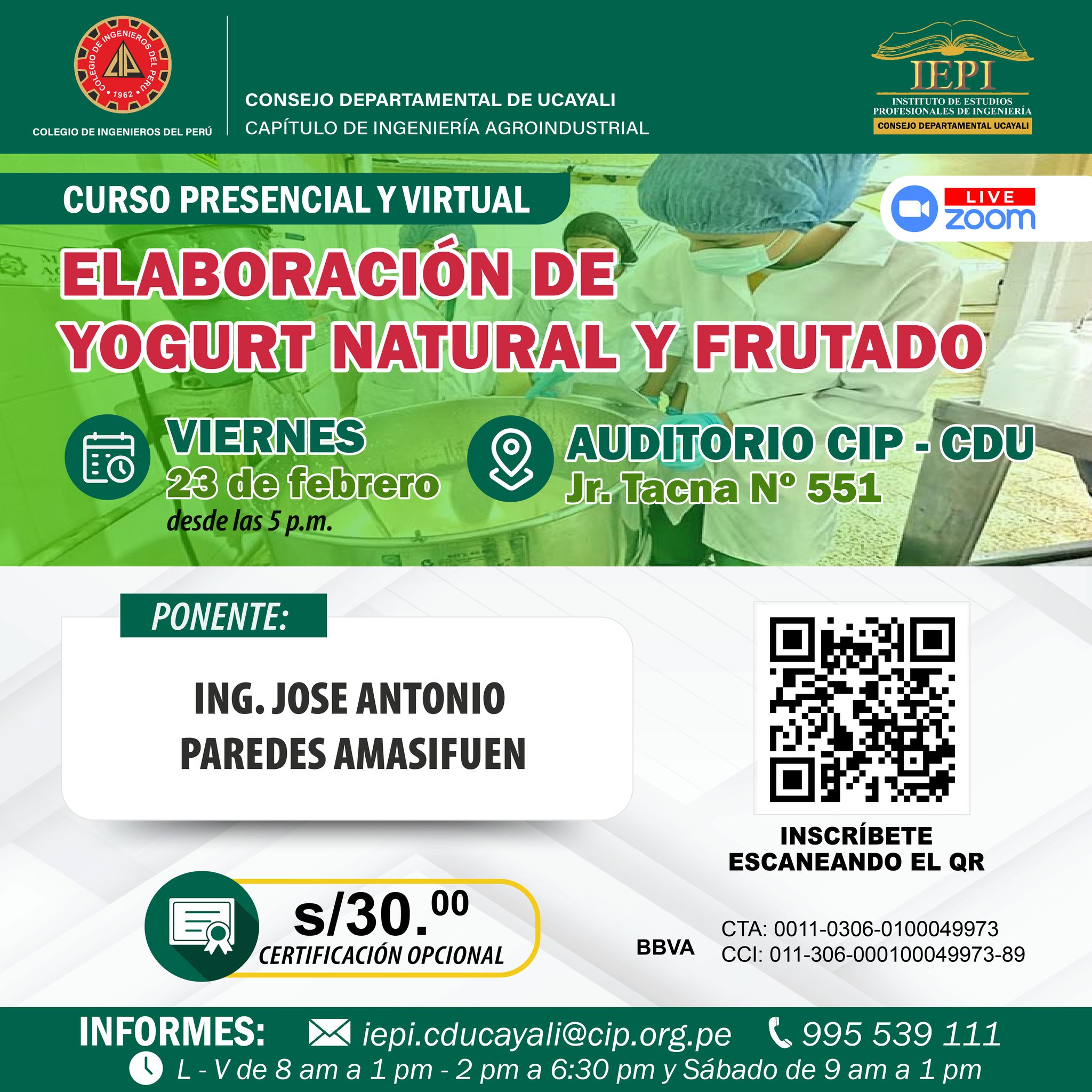 𝗙𝗲𝗰𝗵𝗮: 23 de Febrero 2024 (5:00 pm) 𝗜𝗻𝘀𝗰𝗿𝗶𝗽𝗰𝗶𝗼́𝗻: https://forms.gle/jDYu23LY8gEWj7v56 𝗣𝗼𝗻𝗲𝗻𝘁𝗲: Ing. Jose Antonio Paredes Amasifuen 𝗖𝗲𝗿𝘁𝗶𝗳𝗶𝗰𝗮𝗱𝗼 𝗢𝗽𝗰𝗶𝗼𝗻𝗮𝗹: S/ 30.00 𝗗𝗘𝗣𝗢́𝗦𝗜𝗧𝗢 𝗘𝗡 𝗕𝗕𝗩𝗔:CTA: 0011-0306-0100049973CCI: 011-306-000100049973-89 𝗜𝗠𝗣𝗢𝗥𝗧𝗔𝗡𝗧𝗘: 𝑒𝑛𝑣𝑖𝑎𝑟 𝑣𝑎́𝑢𝑐ℎ𝑒𝑟 𝑎 𝑙𝑎 𝑆𝑟𝑡𝑎. 𝑎𝑠𝑖𝑠𝑡𝑒𝑛𝑡𝑒 𝑑𝑒 𝐼𝐸𝑃𝐼/𝐶𝐼𝑃-𝐶𝐷𝑈 𝗜𝗡𝗙𝗢𝗥𝗠𝗘𝗦:Jhajaira Gerali Fontes Bocanegra – 995 539 111(Asis. IEPI/CIP-CDU)Link directo a WhatsApp: https://wa.me/51995539111Correo: iepi.cducayali@cip.org.pe 𝗛𝗢𝗥𝗔𝗥𝗜𝗢 𝗗𝗘 𝗔𝗧𝗘𝗡𝗖𝗜𝗢́𝗡 𝗜𝗘𝗣𝗜/𝗖𝗜𝗣-𝗖𝗗𝗨:L – V de 08:00 Hrs. a 13:00 Hrs. – 14:00 Hrs. a 17:30 Hrs.Sábado de 09:00 Hrs. a 13:00 Hrs