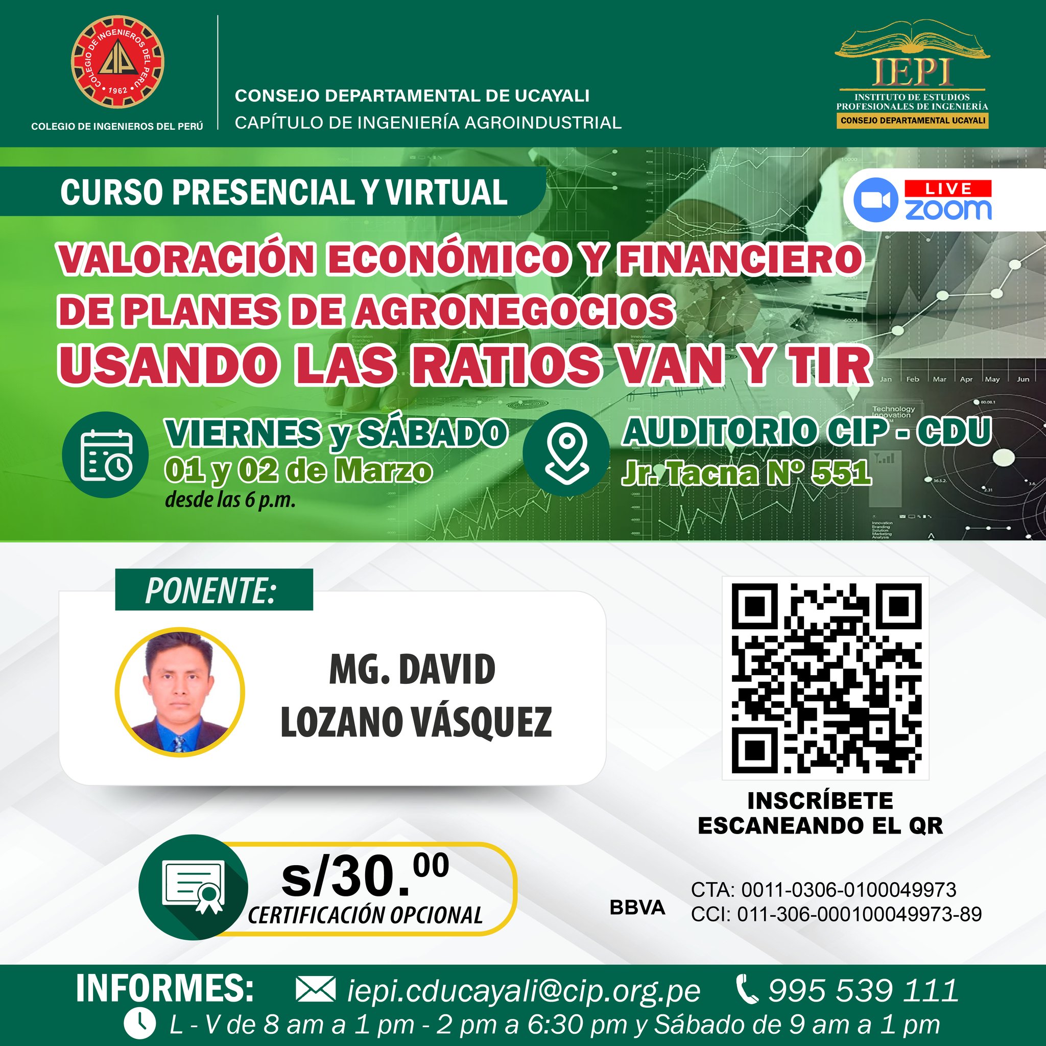 Curso «VALORACIÓN ECONÓMICO Y FINANCIERO DE PLANES DE AGRONEGOCIOS USANDO LAS RATIOS VAN Y TIR»