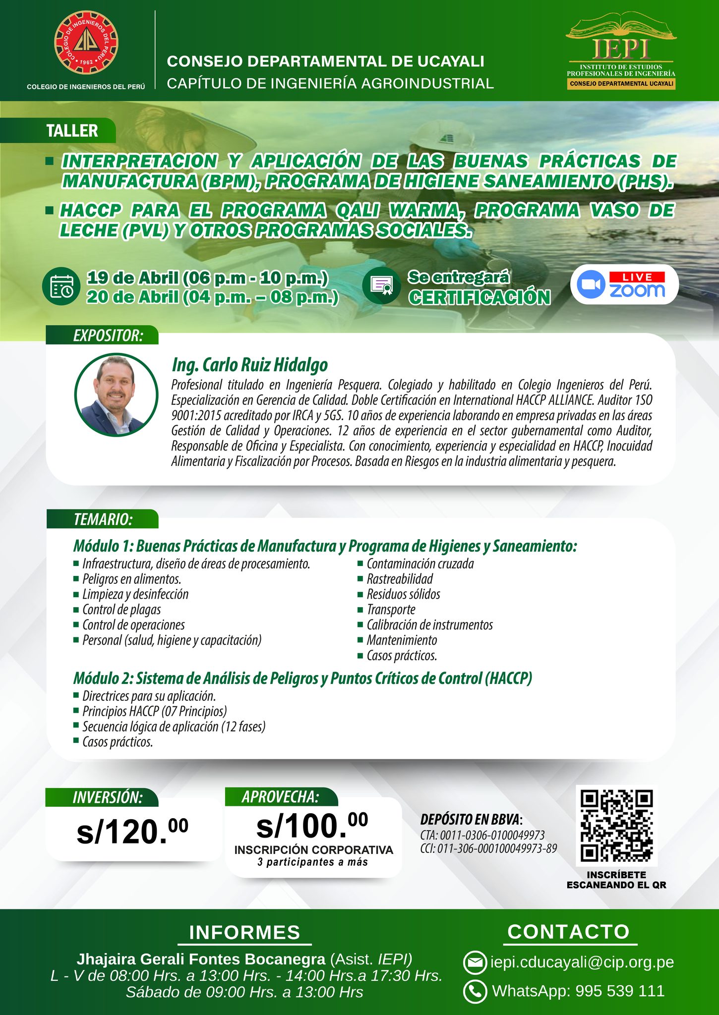 Taller Virtual: «Interpretación y aplicación de las buenas prácticas de manufactura (BPM), programa de higiene saneamiento (PHS) y HACCP para el programa Qali Warma, programa vaso de leche (PVL) y otros programas sociales.»